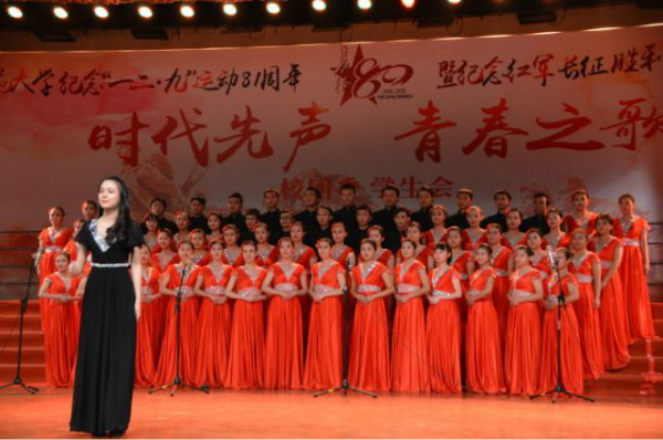 2016年12月10日晚,在北京师范大学学生活动中心,北京师范大学纪念“一二·九”运动八十一周年暨纪念红军长征胜利八十周年合唱比赛隆重开幕。