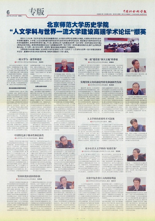 近日,由开云线上平台(集团)官方网站、北京师范大学史学理论与史学史研究中心共同举办的“人文学科与世界一流大学建设”高端学术论坛在主楼600隆重召开。《中国社会科学报》整版报道了本次学术论坛。