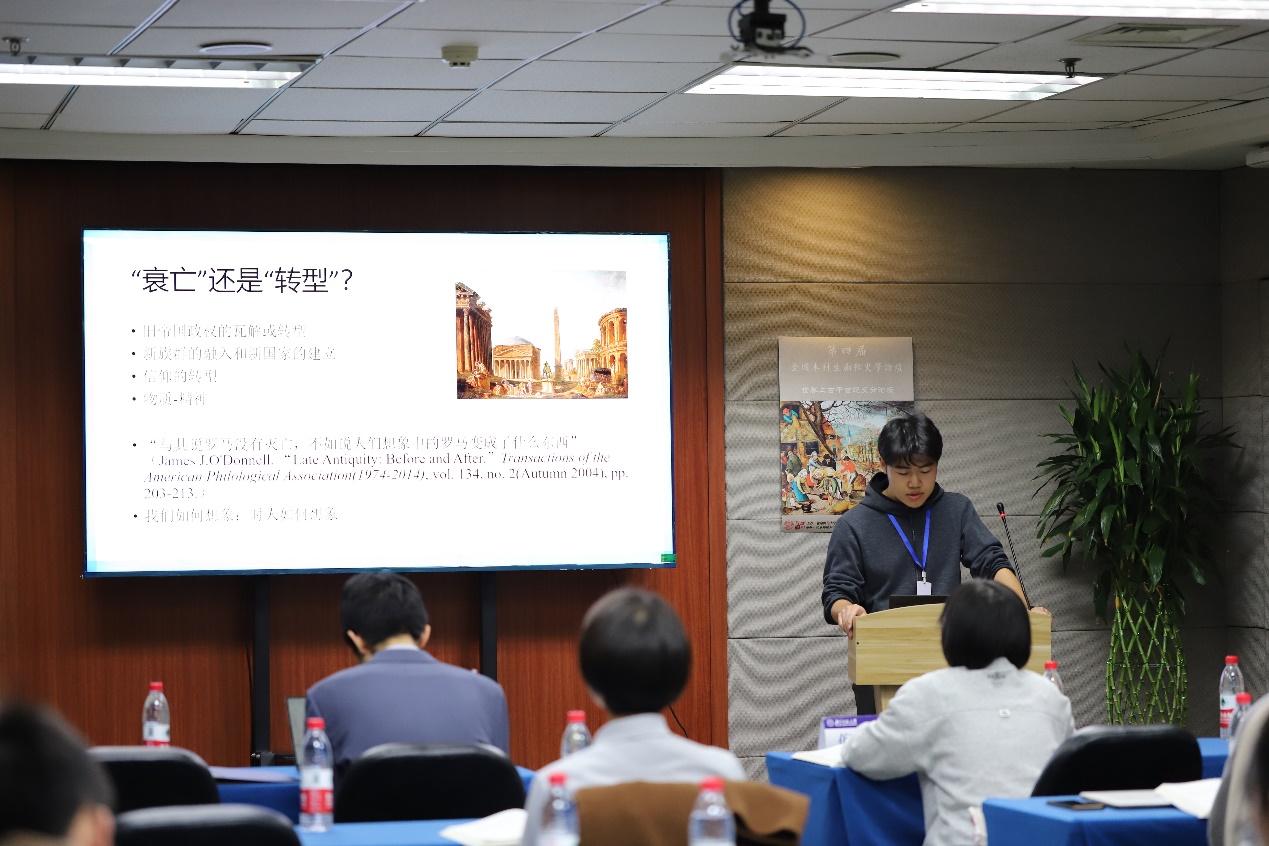 4日10时30分开始,会议进入了报告、评议和讨论环节。按照会议要求,论文作者和评议同学轮流进行了10分钟的汇报和5分钟的评议。会议分为中国古代史与考古文博和中国近现代史与世界史两个分会场。中国古代史与考古文博的报告涵盖了先秦、秦汉、魏晋南北朝、隋唐、宋元、明清各个时期的内容,涉及政治制度史、经济社会史、历史文献学、考古学、古文字学等多个领域;中国近现代史与世界史的报告则涉及政治史、文化史、史学史、学术史、国际关系史、性别史等多个领域,或运用量化研究等方法,或体现跨学科的知识结构和思维模式。青年学子们讨论热烈,老师们从问题意识、学术规范、史料辨析、理论范式、语言锤炼、历史情怀等多个角度进行点评,鞭辟入里,得到同学们的一致好评。