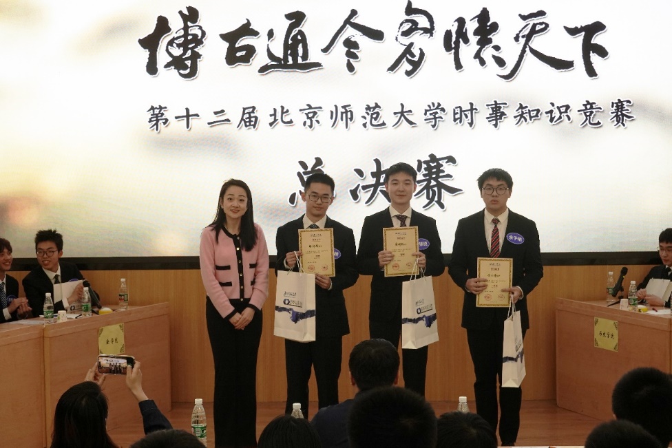 经过激烈角逐,新闻传播学院代表队获得冠军;法学院代表队获得二等奖;外国语言文学学院代表队与历史学院代表队获得三等奖;文学院、全球变化与地球系统科学研究院、法学院获得“最佳组织奖”;新闻传播学院代表队杨新頔和法学院代表队胡俊杰获得“最佳风采奖”。刘涛、牛小游、祁雪晶等嘉宾分别为获奖代表队与学部院系颁奖。