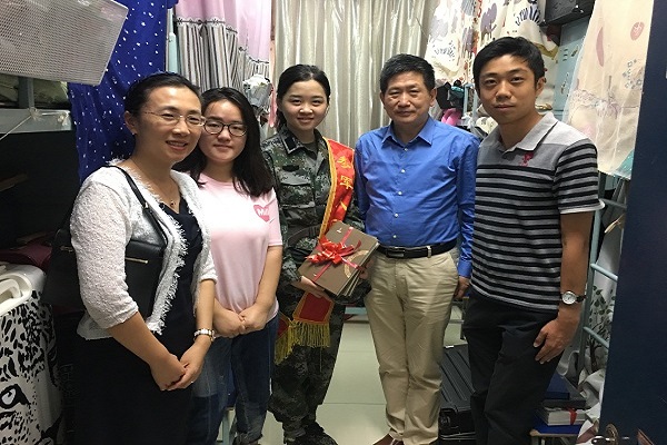 响应国家应征入伍号召,今年我院共有两名本科生顺利入伍,分别是2016级本科生杨宇和2015级本科生张颖。学院分党委对此高度重视,分党委书记郭家宏、分党委副书记王卓凯、2016级本科班班主任倪滕达、2015级本科班班主任江天岳和专职辅导员李力专程到宿舍走访慰问了两名入伍大学生。