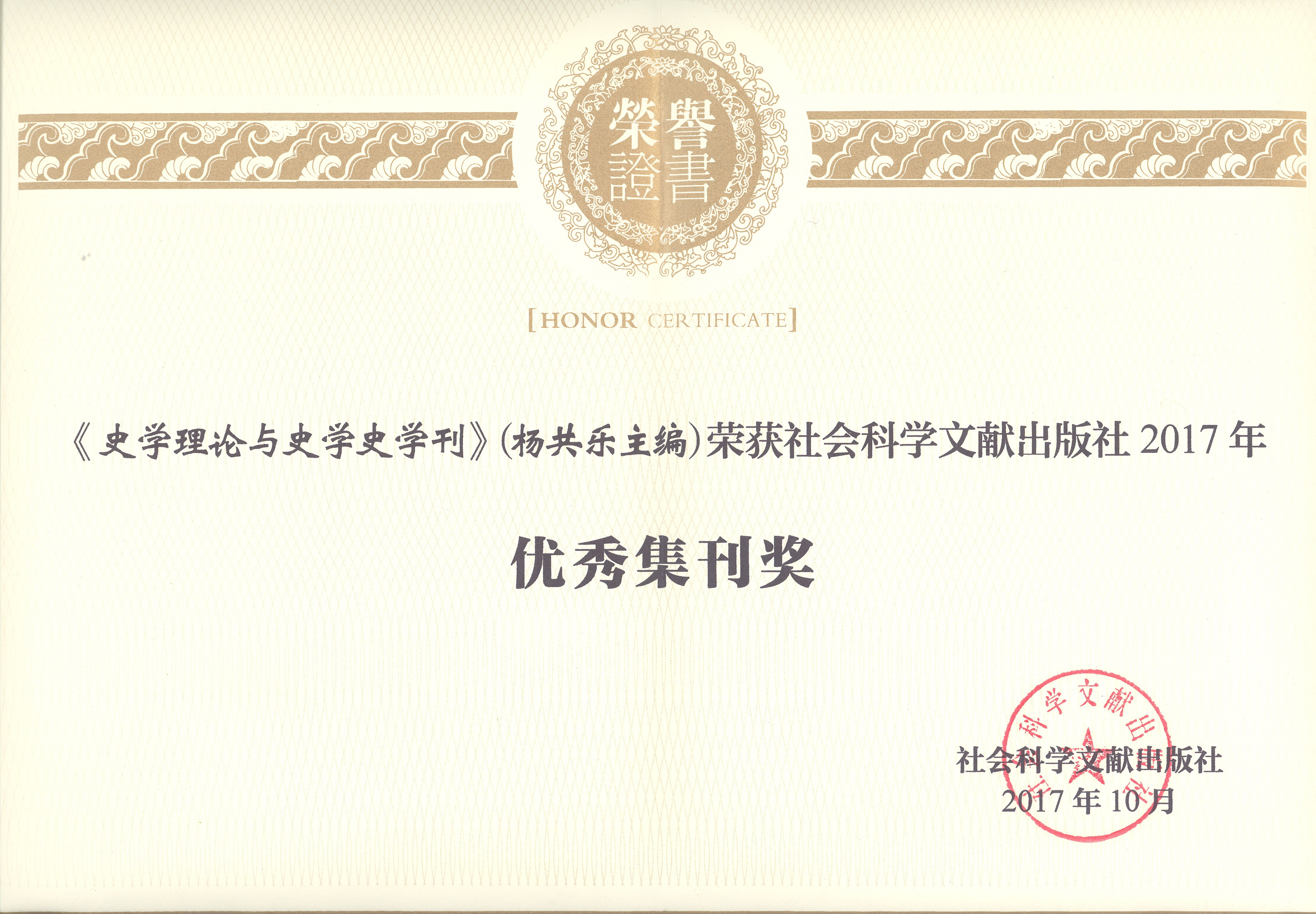 我院杨共乐教授主编的《史学理论与史学史学刊》荣获社会科学文献出版社2017年优秀集刊奖。
