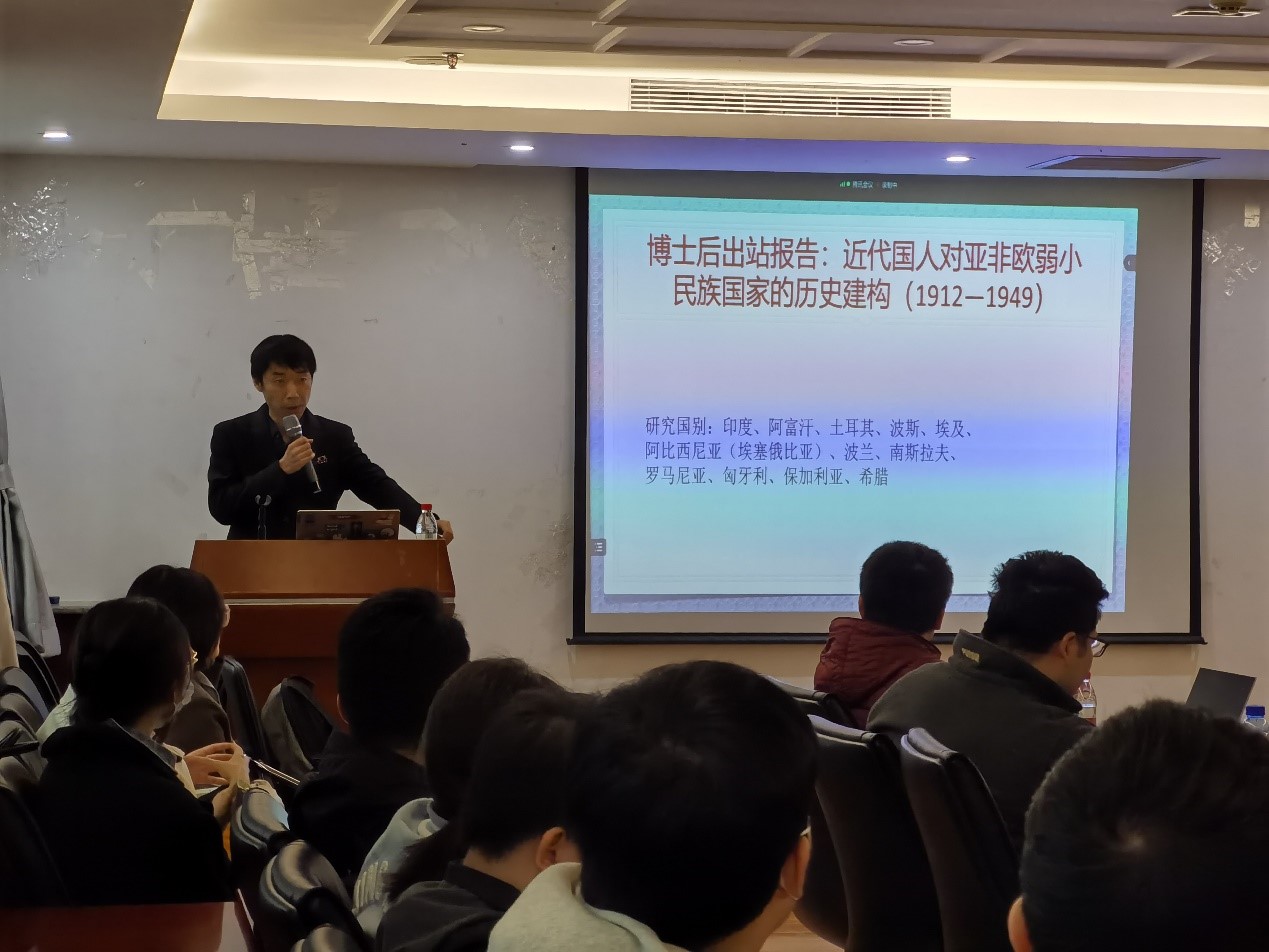 刘澍博士后主讲题目为《制造选题与搜罗史料的9条路径:从民族国家史学到个人学术规划》。伊始,他通过解读民族国家的建构来审视中国史与世界史,陈列介绍了不同国家、不同历史时期的几种不同纪年方式,并在此基础上提出了“版图中国”、“文化中国”与“民族中国”的范畴,区别中华民族与西方民族国家的建构。