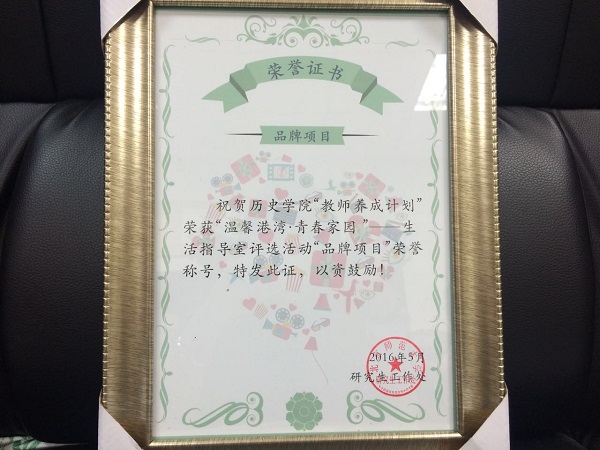 历史学院生活指导室自成立以来,一直以“成长是一种幸福”为服务宣言,以“驻足聆听、倾诉关怀、收获成长、健康幸福”为服务宗旨。今后,仍将继续按照学校的各项要求,不断提升生活指导室的专业水平,进一步为同学们提供更优质的服务。