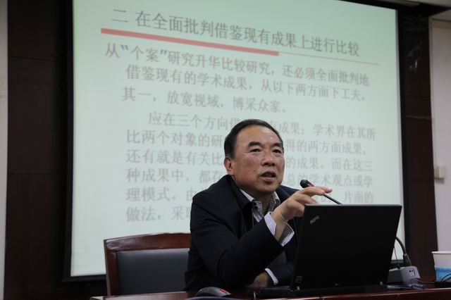 孟广林教授首先指出历史比较的内涵,历史比较研究的根本基础,即“个案”研究。他对如何进行比较研究给出了自己的看法和主张。首先,从“个案”研究升华为比较研究,要求学者们应放宽视域,博采众家。我们应在学术界及其所比较对象的研究中已取得的成果,有关比较中所取得的成果等方面展开研究。其次,应细心筛选,审慎吸纳学术上的权威模式或正统观点,同时指出应注意事项。最后,要遵循辩证比较的学术理路。要充分认识到中西历史发展的多样性与统一性,自觉地用理性思维去辩证地分析中西历史的异同。在整个讲座过程中,孟广林教授将理论与实际案例相结合,充分展示中西历史比较研究的理路与实践,开拓学术研究的思路和方法。