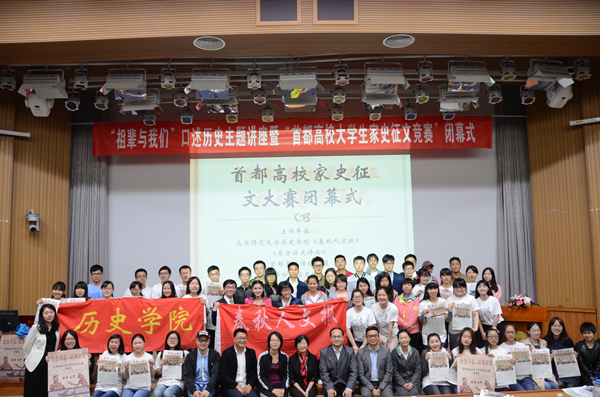 5月9日晚,由历史学院《春秋人文报》、《东方历史评论》、首都高校传媒联盟、中华口述历史研究会、北京师范大学《北师青年》联合主办的“祖辈与我们”口述历史主题讲座暨“首都高校大学生家史征文大赛”闭幕式在敬文讲堂成功举办。
