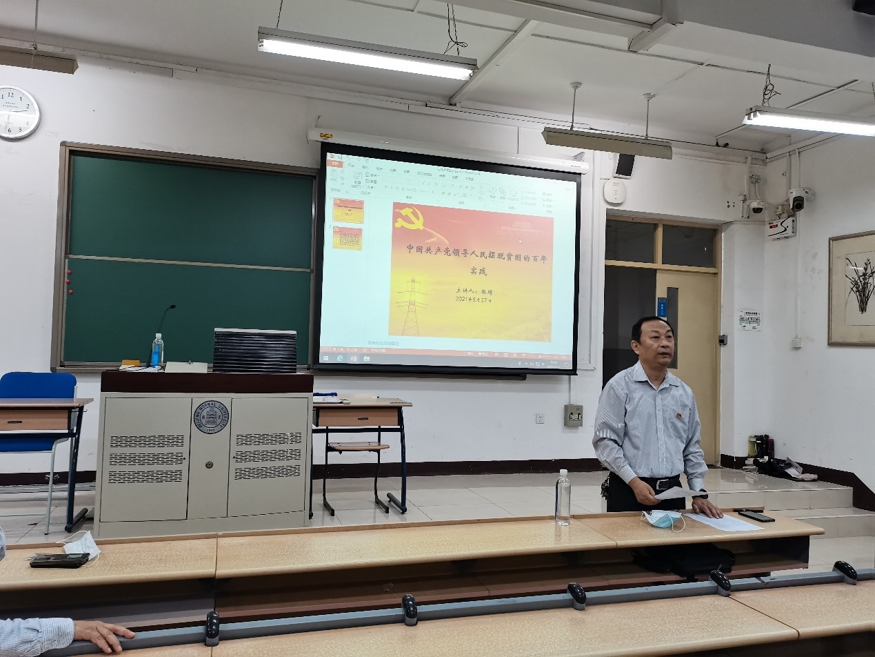 2021年5月27日下午,历史学院二级党校举办“中国共产党领导人民摆脱贫困的百年实践”党史专题讲座。本次讲座由历史学院党委书记耿向东主持,经济与资源管理研究院党总支书记、教授张琦主讲。历史学院教师、学生党员及入党积极分子参加了此次讲座。