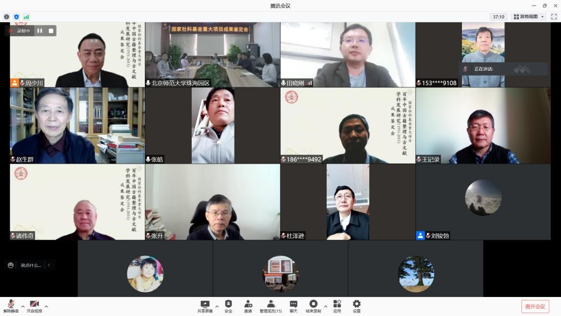 2021年11月14日上午,由开云线上平台(集团)官方网站周少川教授担任首席专家的国家社科基金重大项目“百年中国古籍整理与古文献学科发展研究(1911-2011)”成果鉴定会通过“线上”“线下”相结合的形式召开,线下会场设在北京师范大学珠海校区。